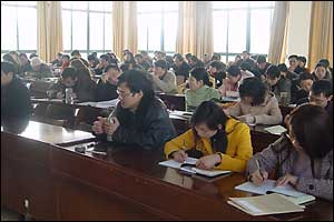 2月22、23日两天,在职党员提前结束假期,从全国、全省各地汇集下沙新校区集中学习。学习以党员大会和党支部讨论两种形式进行。在党员大会上,在职党员集体学习胡锦涛在保持共产党员先进性专题报告会、全国加强和改进大学生思想政治工作会议上的两个重要讲话以及观看《世界政党兴衰史鉴》和《先进人物事迹》资料片。以党支部为单位组织学习讨论《中共中央关于在全党开展以实践“三个代表”重要思想为主要内容的保持共产党员先进性教育活动的意见》,学习院党委关于开展此项教育活动的《实施意见》和党章,进一步统一思想,提高认识,明确工作的步骤,边学边议党员先进性的基本内涵和具体要求。综合8个党支部的学习情况(离退休党支部和学生党支部另组织学习),同志们学习态度十分严肃认真,讨论气氛热烈活跃。