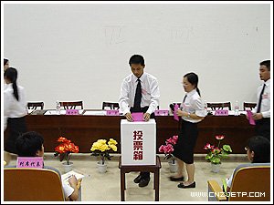 晚上6时,大会在结束了分组审议之后再次集中,进行大会选举。经过预选和学生处面试,共有十五位候选人被提交大会进行选举。十五位候选人依次上台进行演讲。演讲结束后,学生代表本着对全院同学高度负责的态度填写了选票。在全体学生代表的注视下,经过紧张的唱票和记票,大会选举产生了新一届学生委员会委员。