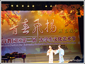 由浙江财经学院、杭州师范学院共同承办的这台开幕式晚会,精彩纷呈,高潮迭起,洋溢着当代大学生的青春风采的节目,感染了在场的每一位观众。杭师院的合唱《香格里拉》、浙江经贸职院的舞蹈《如火的青春》、浙江财经学院的舞蹈《天织女》、浙江传媒学院的配乐诗朗诵《青春中国》等节目都给观众留下了深刻印象。