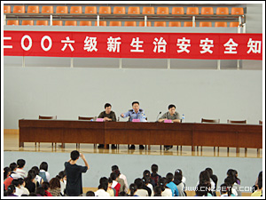9月15日上午,学院在体育馆为2006级新生举办治安安全知识讲座。杭州市公安局下沙分局经济文化保卫大队耿警官列举大量案例就校园治安问题、学生安全自我防范问题讲了生动的一课,广大新生受益匪浅。会上学生处处长许兴苗希望全体新生积极进取,勤学苦练,早日成材。保卫处处长陈满潮联系本院的实际案例,要求大家自觉遵纪守法,并提醒大家注意交通安全、消防安全、出游安全、财物安全。他要求每位学生增强自我防范意识,让家长、学校放心。