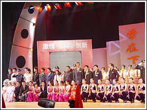 10月27日晚,浙江工商大学学生活动中心剧场掌声阵阵,欢歌如潮,下沙高教园区14所高校的大学生,正以自己的青春激情演绎一台名为“学在下沙”的大型综艺晚会,为期近一个月的下沙高教园区第三届大学生文化艺术节由此正式拉开帷幕。省委教育工委副书记、省教育厅副厅长蒋胜祥以及下沙高教园区各高校的有关负责人出席了开幕式晚会。我院党委副书记潘素芳及有关部门负责人应邀出席了晚会。