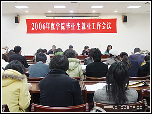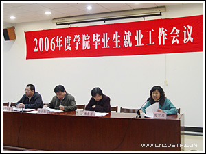 11月29日下午,2006年度学院就业工作会议在视频会议室举行。学院党政领导童学敏、潘素芳、周文根以及有关处室负责人、各系主任、党总支书记、各专业教研室主任、各系辅导员和2007届毕业班班主任出席了此次会议,会议由学院副院长周文根主持。