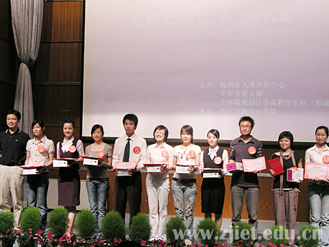 5月23日于浙江金融职业学院举行的下沙高教园区首届“人才杯”联合模拟招聘大赛总决赛中,我院吴一红同学荣获“十佳明日之星“称号,杜勇同学获得大赛优胜奖。