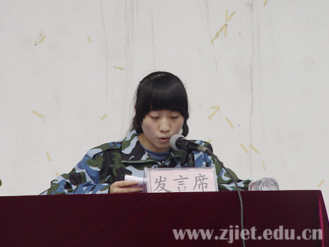会上,潘素芳副书记作了军训动员讲话。她首先代表学院对承担本次军训任务的杭州武警指挥学院的全体指战员表示感谢。接着,潘书记强调了组织大学生军训的重要性和必要性,要求参加本次军训的2007级全体学生听从命令,服从指挥;虚心学习解放军的好思想、好作风 ;培养勇敢顽强、吃苦耐劳的作风和集体荣誉感,形成争先创优的良好氛围,圆满完成本次军训任务 。