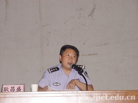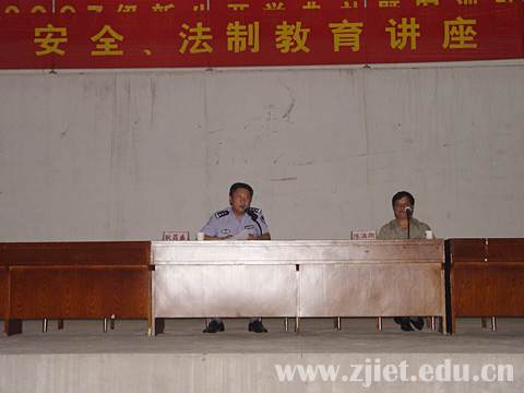 为帮助07级新生尽快适应下沙这个大环境,提高学生安全防范意识和遵纪守法的自觉性。9月17日晚,学院保卫处特邀杭州市公安局下沙经济文化保卫大队耿警官在田径运动场举行了安全、法制教育讲座,讲座由保卫处处长陈满潮主持。