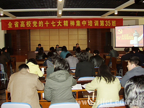 为深入学习贯彻党的十七大精神,提高高校干部的理论修养,促进学院各项事业科学和谐发展,按照省委教育工委的统一部署, 3月21日至3月27日,我院举办了全省高校党的十七大精神集中培训第35班。参加人员包括全体中层干部、系主任助理、党总支委员。