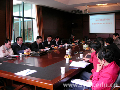 为加强学院为社会主义新农村建设服务的针对性,加快培养基层供销社负责人、农产品交易市场经理、专业合作社领办人等新农村建设带头人,经学院前期调研,拟申报农村合作经济管理专业。4月1日下午,该专业论证会在文一路会议室召开,省供销社副主任瞿建参加论证会,省社合作经济指导处处长徐刚军、业务处处长劳赐铭以及来自基层供销社和专业合作社的5位社长应邀担任论证专家。学院领导童学敏书记、李曙明院长、周文根副院长及教务处、产学办、工商管理系负责人和相关专业老师与会。会议由教务处俞校明副处长主持。