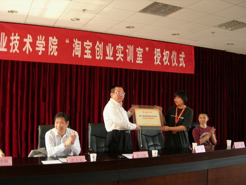 浙江淘宝网络技术有限公司作为国内著名电子商务公司,同我院信息技术系有着紧密的合作关系,双方在2006、2007年组建了第一期、第二期淘宝客服“订单班”,并吸纳我院信息技术系部分学生进入淘宝网工作。去年下半年,我院电子商务专业引入了“淘宝网CTOC网络创业”课程,该课程具有很强的实践性,既能培养学生的实际操作技能,又能培养学生的创业创新能力,为此建立了融入企业文化的淘宝创业实训室,该生产性实训室将成为校、企、政合作的一个新平台,既是校企合作、学生创业的平台,同时也计划和省供销社合作,为浙江特优农产品的营销开辟一个新的渠道。