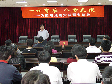 5月13日下午,学院党委召开紧急会议,专门部署赈灾事宜。会后立即致电同属供销系统的四川省商贸学校、四川省贸易学校、四川省绵阳市供销技工学校,了解灾情,表达慰问。并决定在全校师生中组织开展“情系灾区、奉献爱心”抗震救灾活动,为灾区的重建贡献力量。