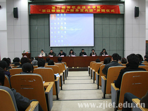 “浙江移动客户服务定向班”是我院电子商务专业与浙江移动客户服务中心联合打造的校企合作项目。在合作期内,双方将组建客户服务人才培养管理委员会,共建生产性实训基地,合作开发客户服务课程,实施以职业能力培养为中心的教学模式,全面培养学员的沟通协调能力、分析判断能力、情绪控制能力、应变能力、表达能力和敬业精神、团队合作精神。首期授课对象为电子商务专业2008级144名学生。
