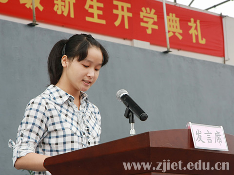 教师代表、学院工商管理系副主任张志乔在典礼上讲话。她代表全体教师欢迎同学们的到来,希望大家尽快适应大学新生活,养成良好的学习习惯,培养良好的综合素质,成为对社会有用的人才。