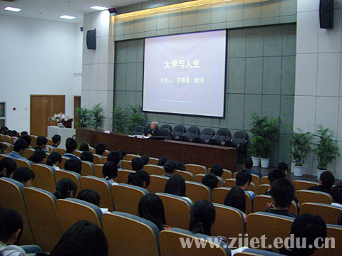 11月15日下午,中国计量学院教授丁锡康应邀前来我院做题为“大学与人生”的讲座。讲座由院招生就业办主任张瑶祥老师主持,院学生处处长许兴苗老师、院团委书记吴刚群老师、各系辅导员及各系学生代表参加此次讲座。