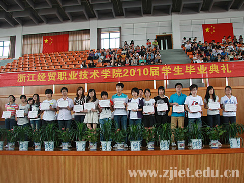 6月7日上午,艳阳高照,天气怡人,经贸校园和谐祥和,喜气洋洋,学院2010届学生毕业典礼在体育馆隆重举行。学院党政领导童学敏、李曙明、周文根、卢显林、潘新华、王建华、张红、蒋丽君在主席台就坐,各系部、处室负责人、全体辅导员、毕业班班主任和2010届毕业生参加了毕业典礼。大会由院长助理蒋丽君教授主持。