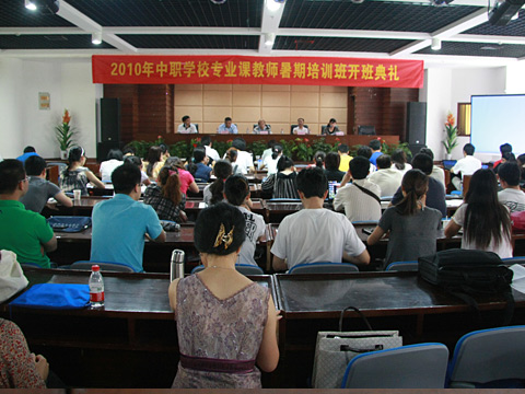 | 7月12日上午,浙江省中等职业学校专业课教师培训班在我院举行开班典礼。来自省内和四川省69所中职学校的90多名中职专业课教师,将参加为期20天的电子商务、市场营销和WEB应用开发专业课理论和实践教学培训。 省教育厅师范处副处长陈伟光、学院院长李曙明等出席了开班仪式。浙江信息工程学校校长金毅伟为学员讲了开班后的第一堂课。