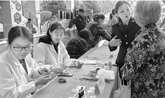 活动现场,来来往往的市民很多,有提着菜篮子的,有推着婴儿车的,还有上班经过的……