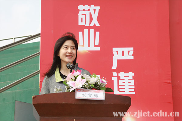 教师代表、工商管理系庞曦通过分享三位优秀校友升学、就业、创业的经历,勉励新生朝着目标去奋斗,在大学时光中学承担、学合作、学知识,磨练心智、锻炼体魄、奋勇前行!