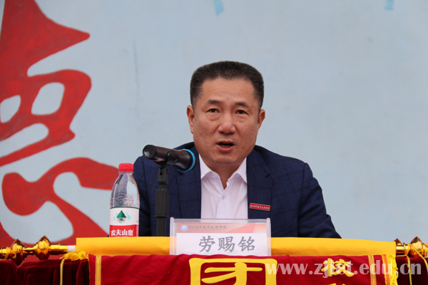 开幕式上,学校党委书记劳赐铭发表致辞。他表示,运动会是学校贯彻党的教育方针,深化“全面育人”的重要载体。长期以来,学校高度重视学生体育运动和健康教育,大力加强体育基础设施建设,着力推进学校竞技体育运动和群众性体育活动的全面进步。此次运动会的成功举办,是对学校组织能力和文明程度的一次检阅,他希望广大师生以此次运动会为契机,激发体育锻炼的热情和积极性,在乐享运动、积极锻炼中强身健体;在挥洒汗水、顽强拼搏中健全人格;在体艺并重、持之以恒中和谐身心,坚定信念、脚踏实地、勇于担当、为开启学校新一轮高水平高质量发展而努力奋斗!