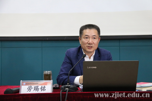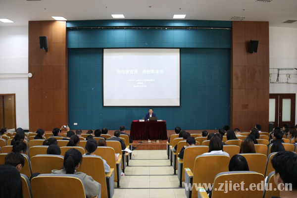 11月13日下午,学校党委书记劳赐铭同志结合所学、所思、所悟,以《描绘新蓝图  再创新奇迹》为题,详细解读了党的十九届五中全会精神。应用工程系、国际贸易系、马克思主义学院教师和联系班级学生140余人聆听了报告。