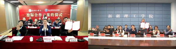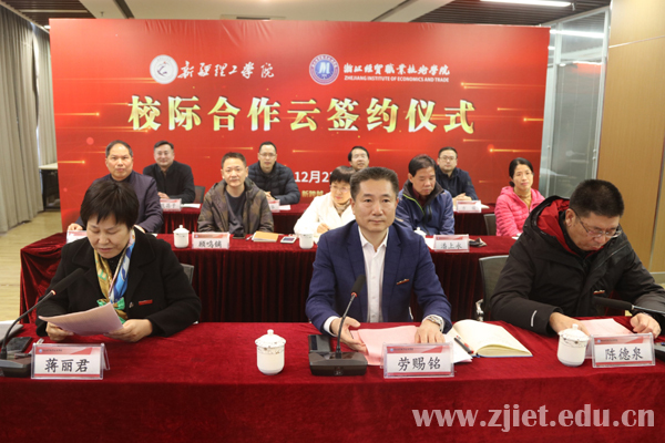 劳赐铭首先代表学校对新疆理工学院全体师生员工致以诚挚问候,向两校携手合作致以良好祝愿,并简要介绍了学校的办学历程、办学成果和特色优势等基本情况。他表示,合作签约仪式的举行,标志着两校将在师资培养、专业建设、学生交换、资源共享等方面展开深度合作,这是双方共同期盼和努力的结果,是对口支援工作取得的实质性进展、阶段性成效,是进一步加强东西部教育交流的有力举措,更是两校携手迈向新征程的良好开端。希望双方始终本着优势互补、平等互利、共同发展的原则,积极推动合作事项落到实处,推动两校的办学水平和办学质量进一步提升,推动双方合作再上新的台阶。同时,学校将充分发挥自身优势,积极做好对口支援工作,一如既往为新疆理工学院的建设和发展提供力所能及的支持。