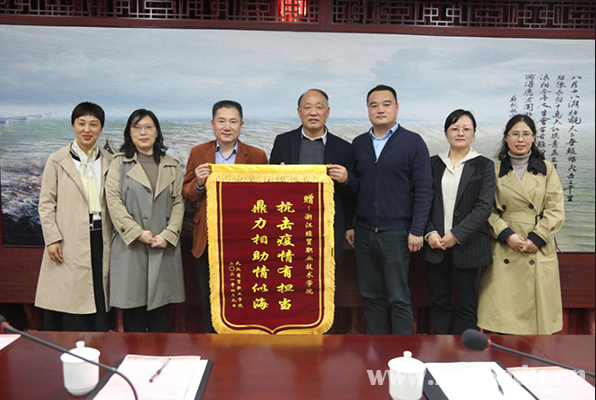 会上,武汉商贸职业学院向学校赠送锦旗。来访期间,丁振国书记一行还参观了学校校史馆和创业学院。