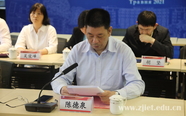 陈德泉代表学校致辞。他指出,学校电子商务专业群作为中国特色高水平专业群,一直致力于开发不同地区的国际化专业标准和课程标准,开展面向亚太地区的电子商务培训项目,输出国际领先的电子商务运营技术,积极打造了服务“一带一路”倡议的电子商务职业教育品牌。本次培训是学校首次面向欧洲国家开展电商培训,意味着学校电商专业群教学资源输出的受众地区进一步扩大,专业教学标准的内涵建设再上新的台阶,也充分彰显了学校服务“一带一路”倡议、推动沿线国家共同构建“职业教育共同体”的信念。他希望,通过此次培训,双方能够进一步完善中乌经贸丝路学院合作机制,拓展合作领域,增进合作友谊,充分发挥中乌经贸丝路学院的抱团优势,为乌方学校和企业培养一批专业技术过硬、适应区域经济发展的高素质技术技能人才,更好地促进中乌经贸丝路学院本土化人才培养和国际产教融合发展。