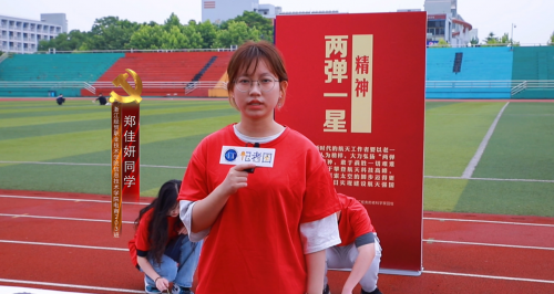 “两弹一星精神令我十分震撼,两弹一星成功研发,振奋了国威、军威,极大地鼓舞了中国人民的志气,增强了中华民族的凝聚力,两弹一星精神将时刻提醒我们艰苦奋斗、无私奉献。”,信息技术学院电子商务204班郑佳妍感言到。