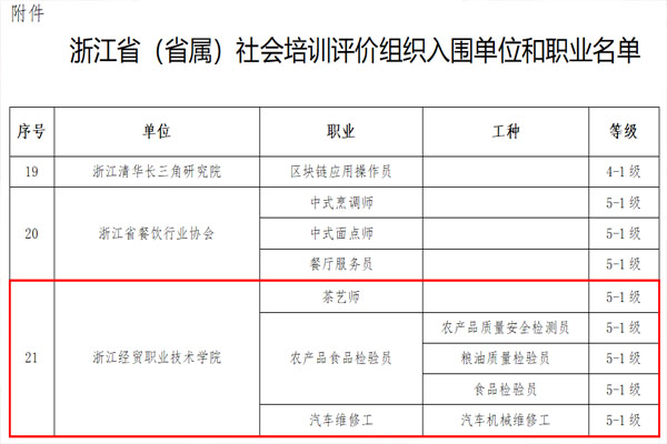 1月14日,浙江省技能人才评价管理服务中心网站发布《关于浙江省(省属)社会培训评价组织遴选结果的公示》,我校成功入围“浙江省(省属)首批社会培训评价组织”。