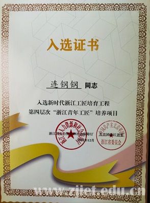 近日,由浙江省人力资源和社会保障厅、共青团浙江省委共同组织实施的“浙江青年工匠”培养项目发布了2021年入选名单。我校数控专业连钢钢老师成功入选首批“浙江青年工匠”。