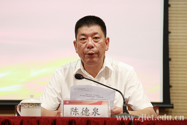 党委副书记、校长陈德泉作题为《锚定目标勠力同心奋力谱写高质量发展“经贸答卷”》的工作报告。他从“安全稳定”“党建引领”“课堂教学”“合作办学”“招生就业”“社会服务”“队伍建设”“服务师生”八个方面对学校2022年上半年的工作做了细致全面的回顾和总结,并对学校当前存在的问题进行了深入分析,部署了2022年下半年的学校重点工作。他强调,要继续高举习近平新时代中国特色社会主义思想伟大旗帜,锚定建设“中国特色、国内一流、国际知名的”高水平职业大学目标,以时不我待的责任感和紧迫感,勠力同心,真抓实干,奋力谱写高质量发展“经贸答卷”,以优异的成绩助力浙江“两个先行”,迎接党的二十大胜利召开。
