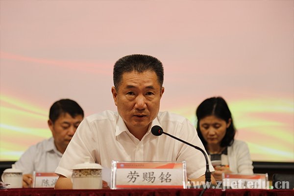 党委书记劳赐铭致开幕词。他肯定了过去一年多来教职工和工会会员代表,在疫情防控、国家“双高计划”建设、人才培养等多方面切实发挥了模范带头作用。他指出,本次大会是全校上下深入学习贯彻党的十九届六中全会精神、浙江省第十五次党代会精神的重要时刻召开的一次政治盛会,是学校加快国家、省“双高计划”建设、全面实施“十四五”发展规划承上启下关键时刻召开的一次工作推进会,也是学校坚持民主管理、依法治校和广大教职员工共商学校发展大计的一次民主会议,是学校政治生活中的一件大事。他希望,代表们以饱满的政治热情、高度的政治责任感和历史使命感,认真履行代表权利和义务,解放思想、实事求是,着眼事业发展全局,审议讨论好相关报告和制度文件,为学校建设和发展建言献策,团结带领广大教职员工以主人翁的姿态积极投身学校各项事业发展。
