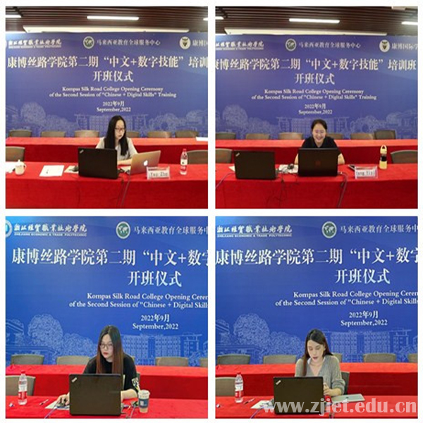 本期“中文+数字技能”培训项目教学团队由信息技术学院、财务会计学院、工商管理学院8位教师组成,采用“直播+录播”的形式进行,内容涵盖新媒体营销、搜索引擎营销、大数据金融技术、电子商务平台等4大专题模块。开班当天,马来西亚康博学院40余名师生在线参加培训,我校4位教师完成了全英文在线直播授课,老师与学员积极开展互动交流,课程内容和教学设计获得马方师生一致好评。