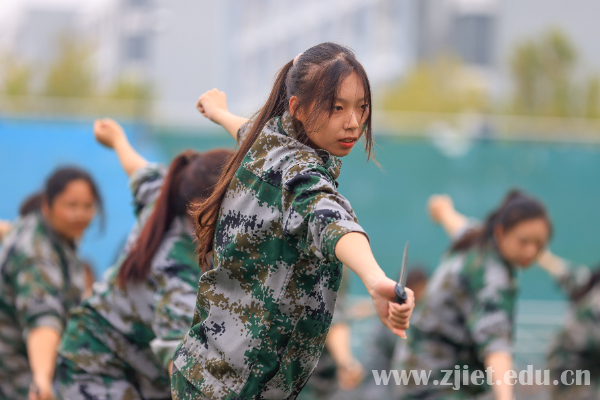 军事技能综合展示在激昂的音乐中震撼上演。团体操方阵依次摆出“喜迎二十大”“奋进征程”等字样,用青春告白祖国擒敌拳方阵拳拳生风,势如猛虎;棍术方阵身棍合一,行云流水;旗语方阵挥舞青春,激情梦想;女生捕俘刀方阵铿锵有力,展现出巾帼不让须眉的强劲战斗力;战术方阵模拟实战演练,精彩演绎红蓝对抗。全体参演新生以意气风发的英姿,展现出经贸新青年团结、奋进、进取的风貌!
