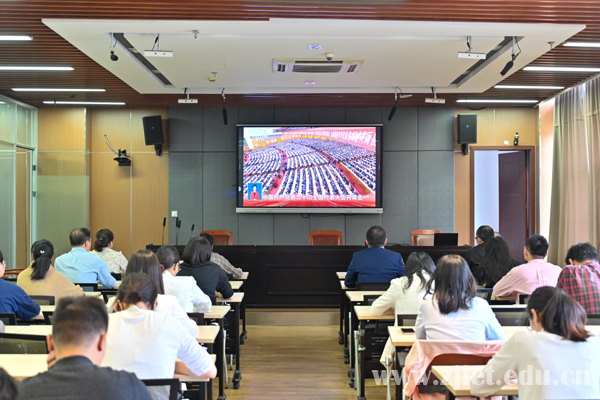 10月16日上午,中国共产党第二十次全国代表大会隆重开幕,习近平总书记代表十九届中央委员会向大会作报告。学校党政领导班子成员、全体党员干部、各二级学院党员师生及部分学生分别在视频会议室、教发中心、图书馆报告厅、各二级学院会议室和教室集中收看大会开幕实况,认真聆听习近平总书记代表十九届中央委员会向大会所作的报告。根据疫情防控需要,学校共设立13个分会场和89个教室,4000余名师生集中收看了大会盛况。