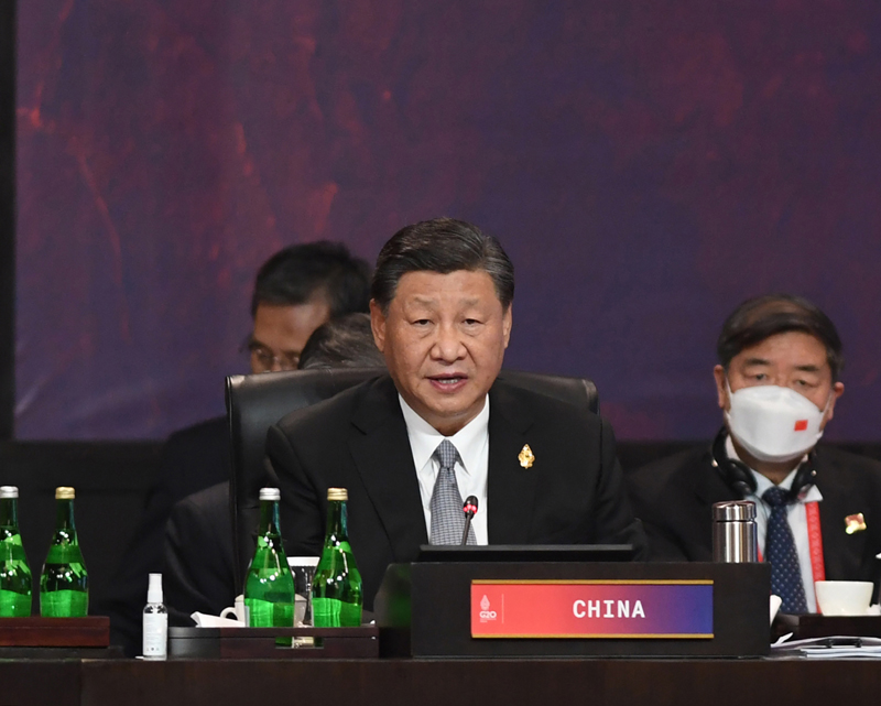 当地时间11月16日,二十国集团领导人第十七次峰会在印度尼西亚巴厘岛继续举行。国家主席习近平出席并发言。新华社发