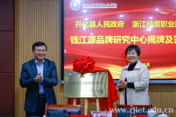 会上,蒋丽君和杨选科作为校地双方代表,签订了《合作成立钱江源品牌研究中心战略协议》,并为钱江源品牌研究中心揭牌。与会人员围绕下一步钱江源品牌研究具体建设工作进行交流研讨。