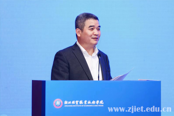 童日晖发表讲话,他指出,学校取得的成绩充分说明了“校社政企”四方合力推进学校发展的模式是成功的,省供销社作为行业主管部门,支持学校发展责无旁贷。他希望,钱塘区委、区政府要将浙江经贸学院作为自己的学校;全省各级供销社要将浙江经贸学院作为自己的学校;浙江省兴合集团有限责任公司及其成员企业作为浙江经贸学院的兄弟单位,要更加紧密合作;作为学校战略合作伙伴的各界组织和机构,既要为学校发展贡献力量,也要为自身发展奠定基础。要多方合作共同构筑起学校内外、供销系统内外推动学校发展的强大合力。他强调,学校要创新四方合作体制机制,促进成员单位深度融合,打造高职院校推进产教融合、校企合作的样板,努力将成果展现在中国式现代化建设的新征程上,成为全国职业教育的“重要窗口”。