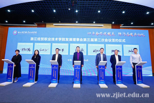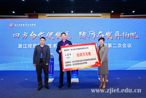 本次会议是一次集思广益、凝心聚力、共谋发展的会议,依托“校社政企”四方合作办学体制,学校发展理事会将持续加强资源交互和共享,不断拓展产教融合广度,夯实四方合作深度,全方位助力区域经济社会高质量发展,为浙江实现“两个先行”贡献经贸力量。