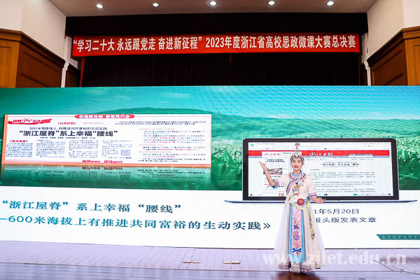 近日,2023年浙江省高校思政微课大赛在浙大宁波理工学院落下帷幕。我校6位师生参加本次大赛,经过复赛、决赛、总决赛三个环节的激烈比拼,共获一等奖2项,二等奖1项,三等奖2项。