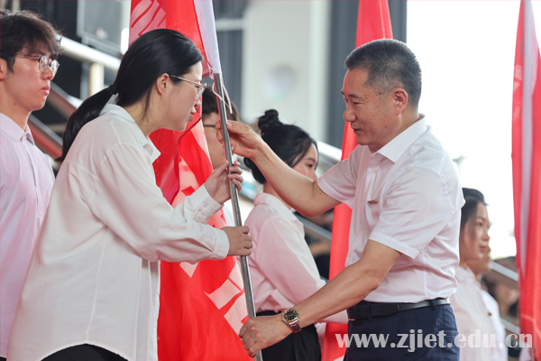 毕业典礼上举行了“青春启航新征程”出征仪式。“送你们出征,祝你们前程似锦!”校党委书记劳赐铭为2023届毕业生代表授出征旗并发布出征动员令。他强调,新时代,是同学们成长成才、成就事业、不容辜负的好时代,是更加重视技能、崇尚技能的时代,实现高质量发展、推进中国式现代化,离不开各行业、各领域的高素质技术技能型人才,职业教育前景广阔,同学们生逢其时、大有可为。他希望同学们在学习中成为“职业人”,在奋斗中成为“实干家”,在磨砺中成为“胜利者”,放飞青春梦想,创造精彩人生。