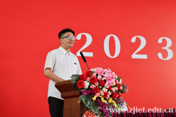 “感恩经贸让我的成长从‘量变’升华到‘质变’;今后定将牢记母校嘱托,廉洁从业,做一个廉洁、勤勉、诚信、实干之人。”来自信息技术学院软件技术专业、浙江省优秀毕业生获得者徐俊勇同学作为毕业生代表发言,一段话情真意切,表达了对母校的感恩之情和对未来的庄重承诺。