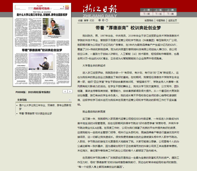 浙江日报 | 带着“厚德崇商”校训奔赴创业梦