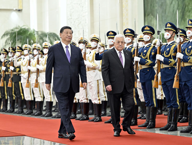会谈前,习近平在人民大会堂北大厅为阿巴斯举行欢迎仪式。