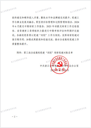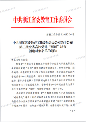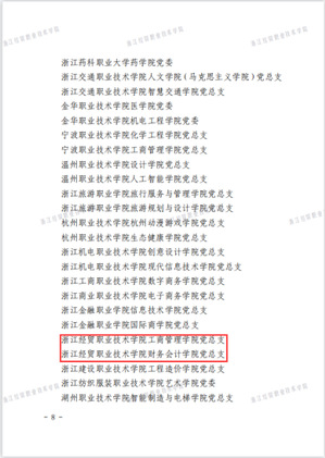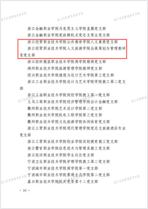 近日,浙江省教育厅公布了第三批全省高校党建“双创”培育创建对象入选名单,我校工商管理学院党总支、财务会计学院党总支、公共教育学院人文素质党支部和人文旅游学院会展策划与管理教研室党支部等4个基层党组织成功入选。