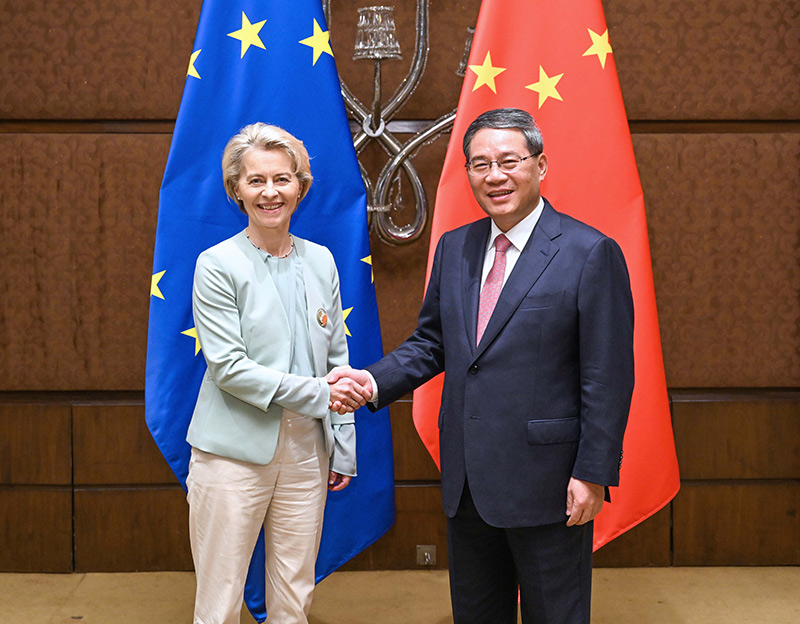 李强指出,防风险与合作不是对立的,不能把相互依存与不安全简单画等号,更不应将经济问题泛安全化、泛政治化。中国的发展和开放,给欧洲和世界带来的是机遇不是风险。中方愿同欧方加强沟通协作,提升中欧经贸关系的可靠性、稳定性。希望欧盟秉持市场经济和公平竞争原则,保持贸易和投资市场开放,为中国企业赴欧投资经营提供公平、透明、非歧视性的环境。中方愿同欧方进一步深化绿色伙伴关系,在清洁能源、绿色金融等领域加强对话合作,为发展中国家应对气候变化提供支持。