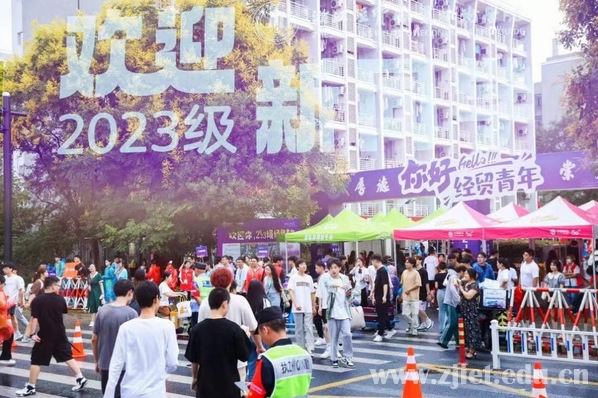 “你好 经贸青年”、“迎亚运启新程向未来”、“我的经贸我来啦”……今年的迎新宣传主打亚运色彩,校园里随处可见的主题喷绘、拱门、横幅、道旗,营造起喜迎亚运、活力迎新的宣传氛围。特色签名墙吸引家长和学生打卡留念,留下难忘的入学记忆。