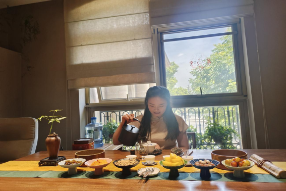 兰香师姐介绍道,创业初期她曾面临着品牌茶配货压力大、同行差异性小、吸引新客源难和家人不支持等多重难题。但是,创业之路再难,她也从未想过放弃。她以学校的专业知识和精神理念为支撑,通过不断思考与创新来提升专业技能。面对困境,她不断调整和优化茶馆的运营策略,使其步入正轨。经过一系列的努力和坚持,茶馆逐渐获得了市场的认可,据大众点评平台显示,2024年7月,“清如”荣登富阳区茶馆销售榜第二名。