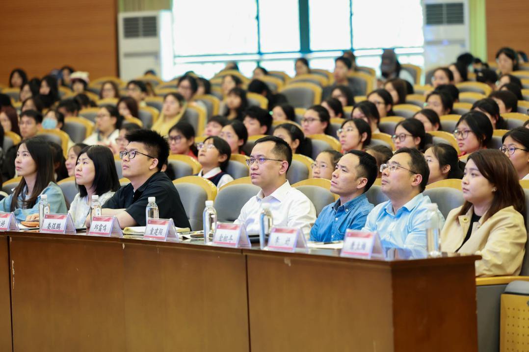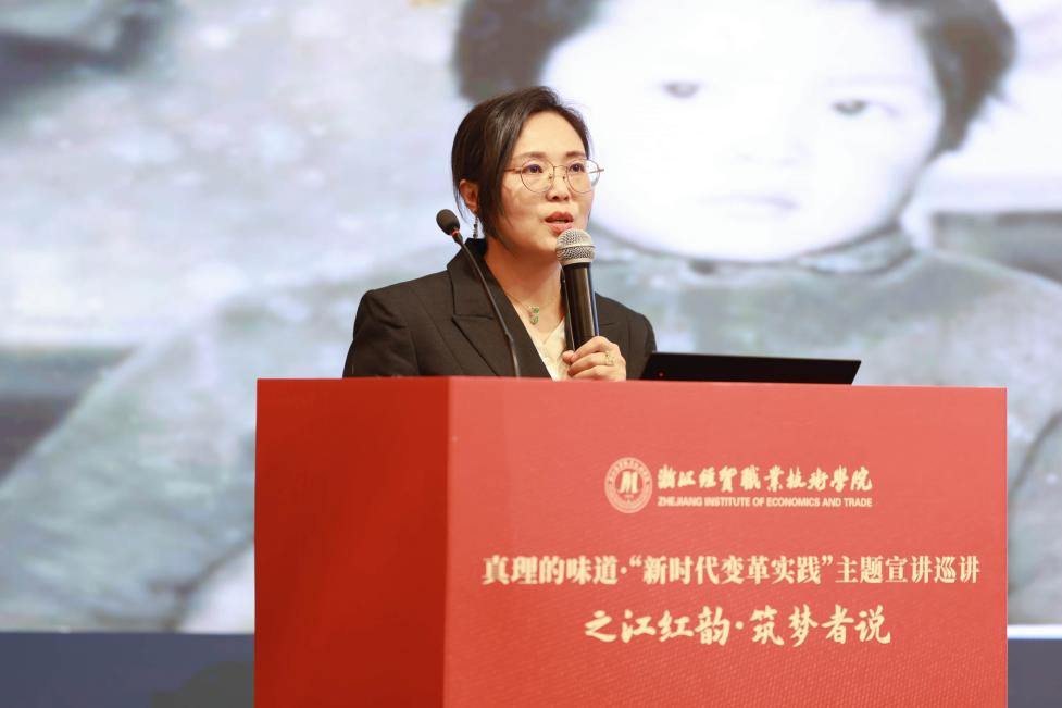 经贸学院宣传统战部、学生工作部、团委、马克思主义学院负责人及相关教师,杭州市人民职业学校、杭州市钱塘区前进中学、杭州市钱塘区前进小学师生代表,学校党校培训班学员、团校培训班学员、青马工程培训班学员等300余人现场聆听了宣讲报告。