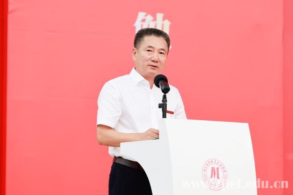 党委书记劳赐铭向每一位加入经贸大家庭的新生表示热烈的欢迎和衷心的祝福,并以《精技笃行砺匠心 让青春在以技报国中绽放光彩》为题给全体新生上了“开学第一课”。他指出,全体新生应肩负起“技能报国、守正创新”的时代使命,首在精进技能、要在知行合一、贵在持之以恒。他对新生提出五点希望:一是以学为基,做善思笃行的求知者,让学习成为青春远航的动力;二是以闯为劲,做敢于创新的开拓者,勇辟新赛道、书写新答卷;三是以韧为骨,做不畏挫折的奋斗者,在“自找苦吃”中砥砺前行;四是以责为魂,做胸怀家国的担当者,将个人理想融入国家发展大局;五是以善为怀,做心胸宽广的豁达者,以健全人格涵养人生格局。