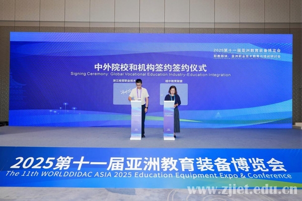 近日,由我校和大连理工大学出版社、博鳌职业教育发展大会组委会共同主办的2025东盟职业教育产教融合国际合作研讨会暨中国一东盟数字产教融合共同体成立大会在杭州大会展中心成功举行。此次会议共邀请柬埔寨、马来西亚、越南、东帝汶等东盟国家,以及国内近40余家院校、企业负责人、教师代表200余人参加会议。学校副校长林锋出席会议并致辞。学校国际教育学院、国际交流与合作中心负责人及商务智能学院相关教师代表参加会议。